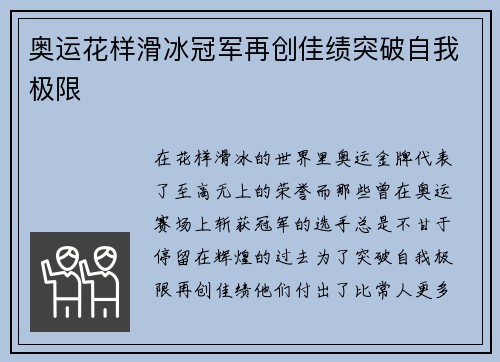 奥运花样滑冰冠军再创佳绩突破自我极限